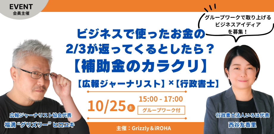 第6回ビジネスで使ったお金の2/3が戻ってくるとしたら…?補助金勉強会 —小規模事業者持続化補助金 編-を開催いたします!
