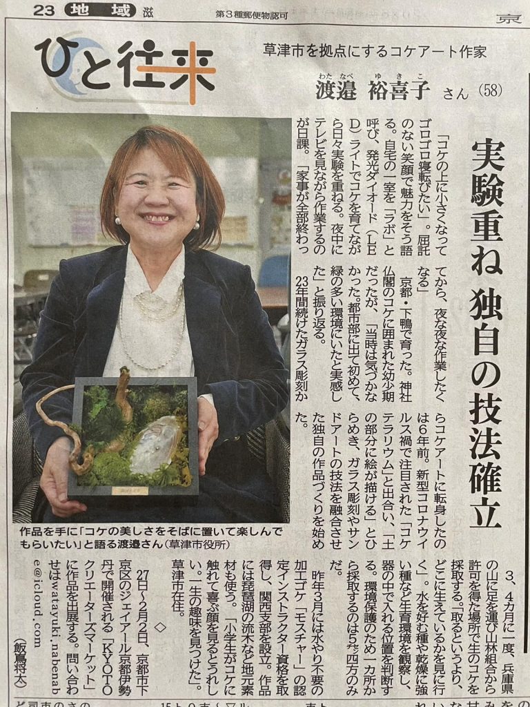 滋賀草津のコケアート作家の渡邉裕喜子様【京都新聞滋賀】に掲載!